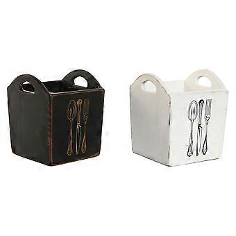 Cutlery basket Home ESPRIT White Black Fir wood 15 x 15 x 18 cm