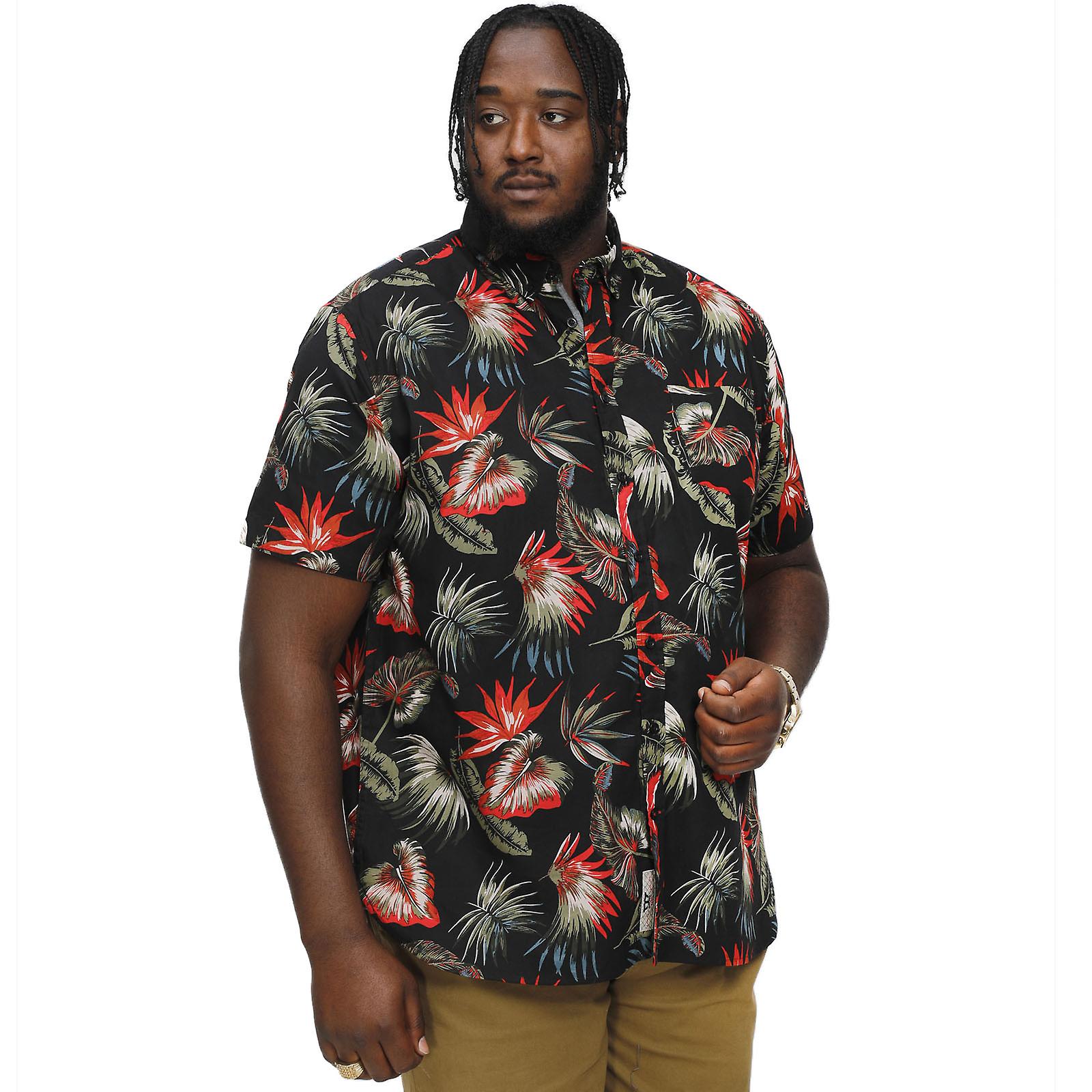 D555 Mens Lennox Big Tall Kingsize Hawaiian Print Short Sleeve Shirt - Black