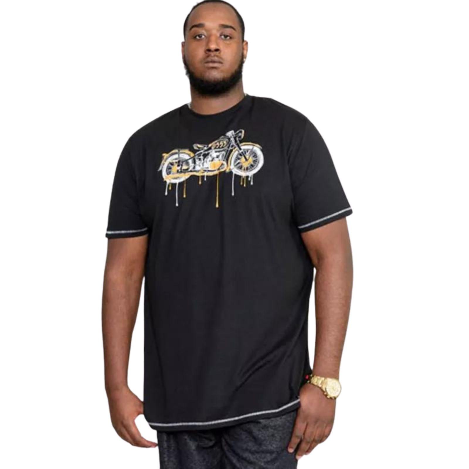 D555 Mens Rochester Big Tall Kingsize Motorbike Print T-Shirt Top Tee - Black