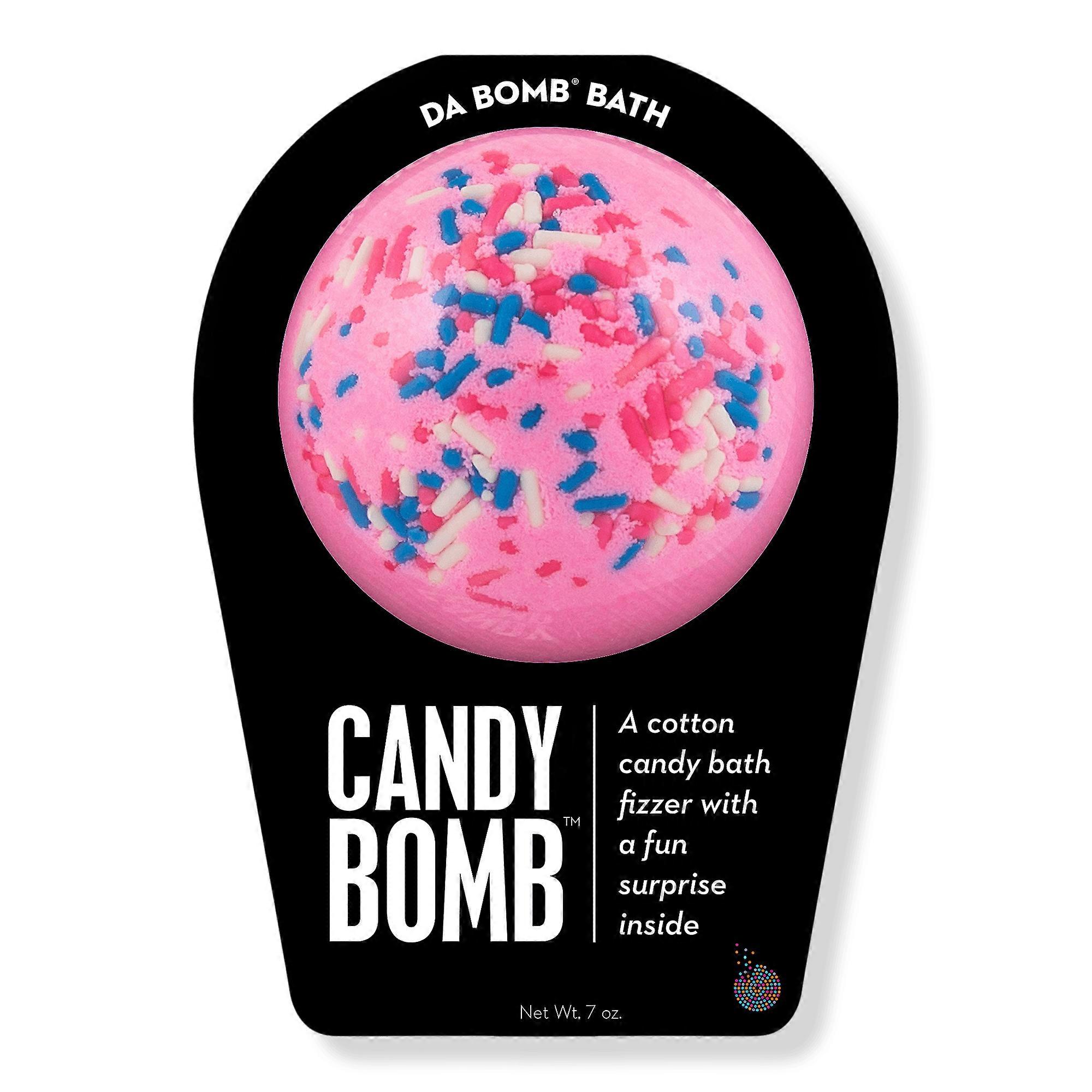 Da Bomb Candy Bath Bomb: Get your bath time sugar rush on with the help of this sweet fizzer. Watch carefully as this cotton candy fizzer dissolves, because there's a fun surprise inside. Perfect for adults and kids alike. (Everyone loves surprises). Features Scent: Cotton CandyPhthalate FreeParaben FreeSLS FreeSulfate FreeGluten Free Inactive Ingredients: Hydrogenated Polyisobutene, Caprylic/Capric Triglyceride, Octyldodecanol, Copernicia Cerifera (Carnauba) Wax (Cera Carnauba/Cire De Carnauba), Simmondsia Chinensis (Jojoba) Seed Oil, Alaria Esculenta Extract, Smithsonite Extract, Saccharomyces/Copper Ferment, Ethylhexylglycerin, Vanillin, Silica, Disteardimonium Hectorite, Polyethylene, Propylene Carbonate, Hydrogenated Polycyclopentadiene. May Contain: Mica, Titanium Dioxide (CI 77891), Iron Oxides (CI 77491, CI 77492, CI 77499), Red 7 Lake (CI 15850), Red 30 Lake (CI 73360), Yellow 5 Lake (CI 19140). Suggested Use: For some fizzy fun, simply fill your bath tub with warm water and drop in one fragrant bath bomb. UPC: 000002514656 Weight: 0.94 lbs