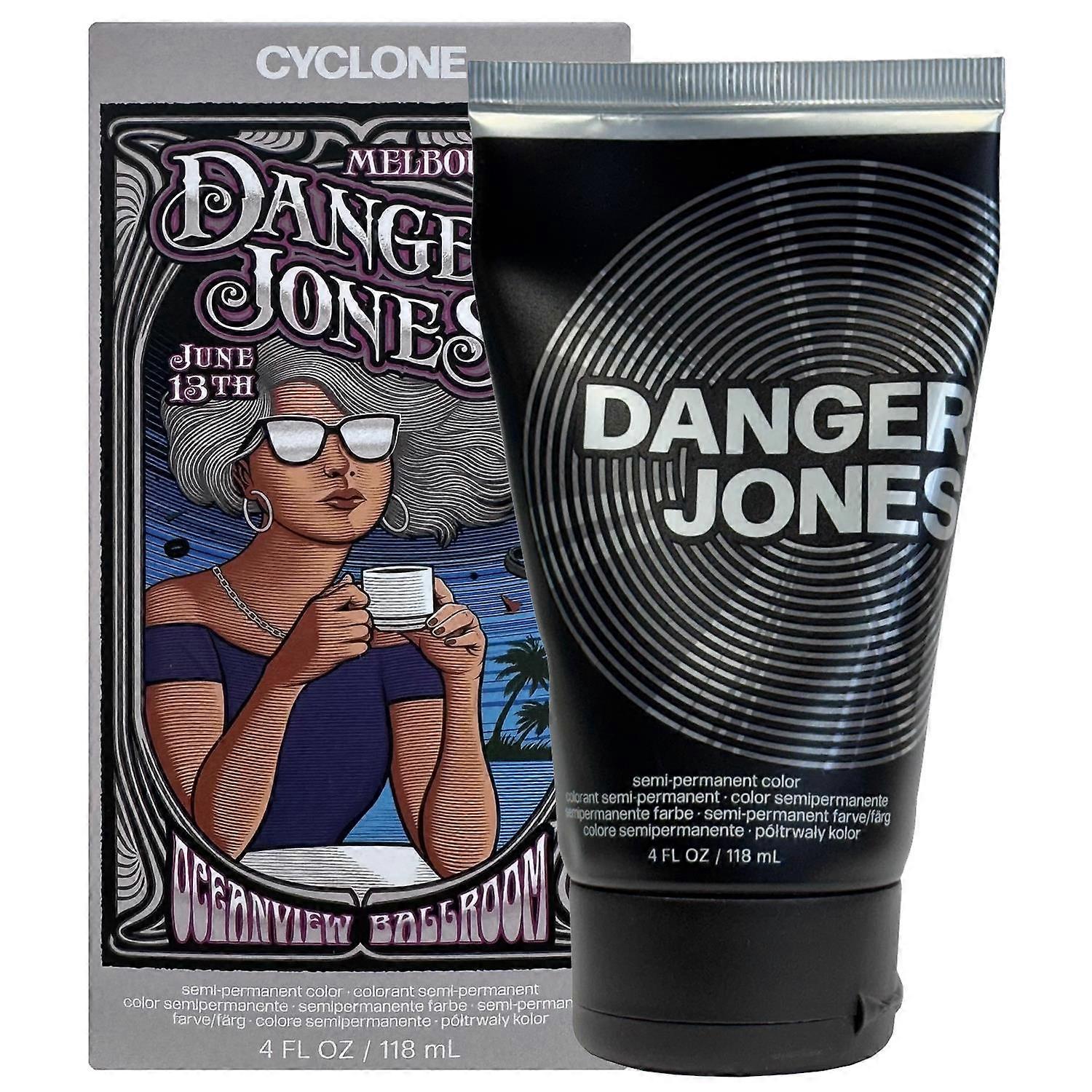 Transform your look with Danger Jones Semi-Permanent Hair Colours, designed for those who want vibrant, expressive shades with salon-quality performance. Each colour is formulated to deliver intense pigment, smooth application, and a beautiful fade that keeps your hair looking fresh and stylish. Get swept away with Cyclone a silver pastel. This silver falls closer to purple than blue on the colour wheel with its purple base.Key Benefits-Long-lasting vibrancy for bold, head-turning colour.Beautiful fade that transitions seamlessly without harsh tones.Fast, smooth application for effortless styling.Conditioning & detangling formula to keep hair soft and manageable.Intermixable & customisable shades to create your perfect colour blend.Features-Vegan formulaNo animal testing – cruelty-free hair colourGluten freeAmmonia freeParaben freeMEA freePPD freeHow to Use:Apply to clean, dry, pre-lightened hair for best results. Using gloves, spread evenly from root to tip. Leave on for 20–40 minutes, depending on desired intensity. Rinse thoroughly with cool water until water runs clear. Style as usual and enjoy vibrant, long-lasting colour.Ingredients:Water/Eau/Aqua, Cetyl Alcohol, Glycerin, Stearalkonium Chloride, Glyceryl Stearate, PEG-100 Stéarate, Propanediol, Basic Blue 99 (C156059), Basic Brown 17 (CI12251), Basic Red 51, Basic Yellow 87, Basic Violet 2 (CI42520), Caprylyl Glycol, Ceteareth-20, Cetearyl Alcohol, Citric Acid, Didecyldimonium Chloride, Guar Hydroxypropyltrimonium Chloride, HC Blue No. 15, Hydrolyzed Rice Proteín, Methylpropanediol, Parfum (Fragrance), Polyquaternium-80, Quaternium-75. Sodium Chloride, Tetrasodium Glutamate Diacetate, Stearyl Alcohol, Benzyl Alcohol, Potassium Sorbate, Sodium Benzoate, Hexyl CinnamalWarning:For external use only. For professional use only. Keep out of reach of children. This product contains ingredients which may cause skin irritation on certain individuals, a preliminary test according to accompanied directions should first be made. This product must not be used for dyeing the eyelashes or eyebrows; to do so may cause blindness. If product gets in eyes, rinse eyes immediately with water and consult with a medical professional. Do not use if scalp is irritated or injured. Do not use if client has already had a reaction to a hair color product. The risk of an allergic reaction may increase if your client has a tattoo. Contains STEARALKONIUM CHLORIDE as antistatic.