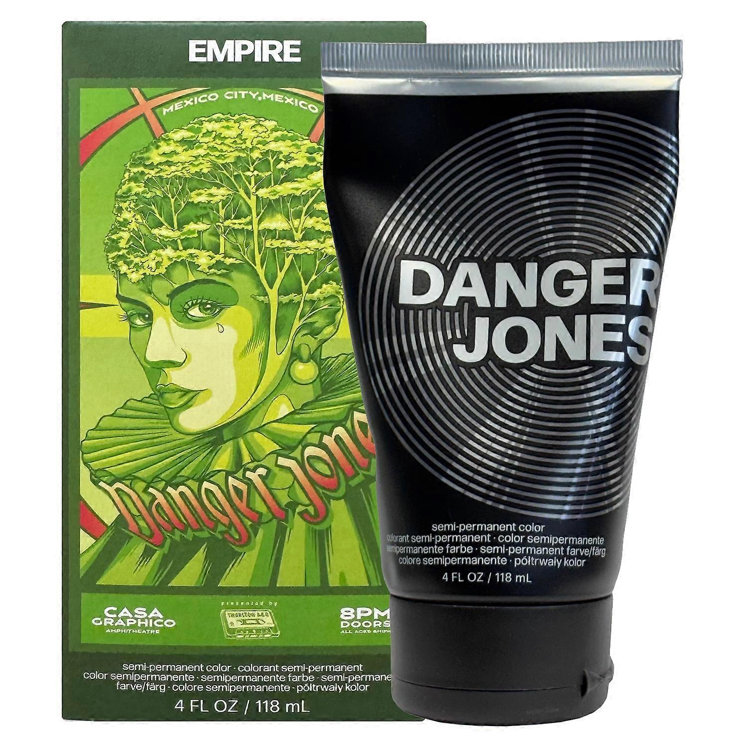 Transform your look with Danger Jones Semi-Permanent Hair Colours, designed for those who want vibrant, expressive shades with salon-quality performance. Each colour is formulated to deliver intense pigment, smooth application, and a beautiful fade that keeps your hair looking fresh and stylish. A vibrant long lasting green semi permanent dye.Key Benefits-Long-lasting vibrancy for bold, head-turning colour.Beautiful fade that transitions seamlessly without harsh tones.Fast, smooth application for effortless styling.Conditioning & detangling formula to keep hair soft and manageable.Intermixable & customisable shades to create your perfect colour blend.Features-Vegan formulaNo animal testing – cruelty-free hair colourGluten freeAmmonia freeParaben freeMEA freePPD freeHow to Use:Apply to clean, dry, pre-lightened hair for best results. Using gloves, spread evenly from root to tip. Leave on for 20–40 minutes, depending on desired intensity. Rinse thoroughly with cool water until water runs clear. Style as usual and enjoy vibrant, long-lasting colour.Ingredients:Water/Eau/Aqua, Cetyl Alcohol, Glycerin, Stearalkonium Chloride, Glyceryl Stearate, PEG-100 Stearate, Propanediol, Basic Orange 31, Basic Red 51, Basic Violet 2, Basic Yellow 87, Caprylyl Glycol, Ceteareth-20, Cetearyl Alcohol, Citric Acid, Didecyldimonium Chloride, Guar Hydroxypropyltrimonium Chloride, HC Blue No. 15. Hydrolyzed Rice Protein, Methylpropanediol, Parfum (Fragrance), Polyquaternium-80, Quaternium-75, Sodium Chloride, Sodium Hydroxíde, Tetrasodium Glutamate Diacetate, Benzyl Alcohol, Potassium Sorbate, Sodium Benzoate, Hexyl CinnamalWarning:For external use only. For professional use only. Keep out of reach of children. This product contains ingredients which may cause skin irritation on certain individuals, a preliminary test according to accompanied directions should first be made. This product must not be used for dyeing the eyelashes or eyebrows; to do so may cause blindness. If product gets in eyes, rinse eyes immediately with water and consult with a medical professional. Do not use if scalp is irritated or injured. Do not use if client has already had a reaction to a hair color product. The risk of an allergic reaction may increase if your client has a tattoo. Contains STEARALKONIUM CHLORIDE as antistatic.
