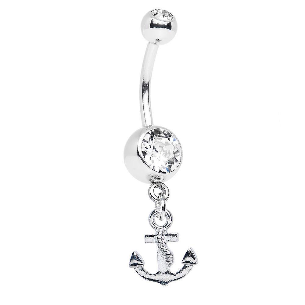 Dangle belly navel ring - cz gems with anchor dangle - 14ga 316l surgical steel