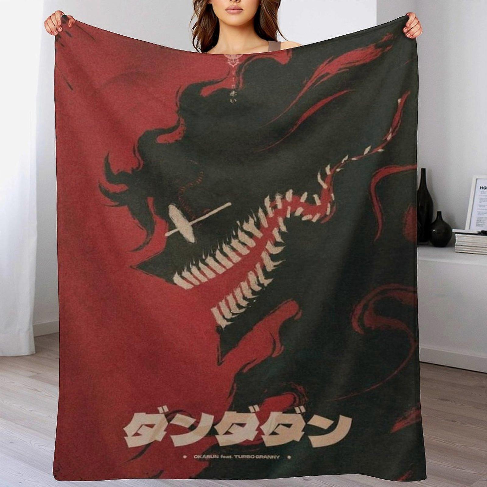 Dark Anime Monster Silhouette Graphic with Japanese Letter Print Fleece Blanket, Soft Warm Cozy Throw for Sofa Bed Bedroom Decor, Anime Style Fans Uni