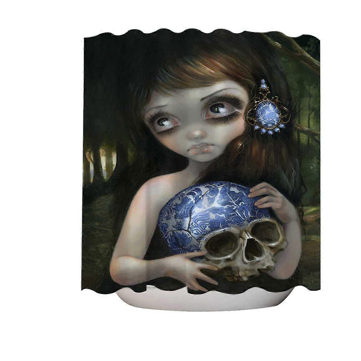 Dark Art Girl with Porcelain Blue Willow Skull Shower Curtain