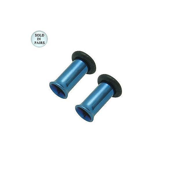 Dark blue anodized titanium tunnel eyelet plugs - 6 gauge