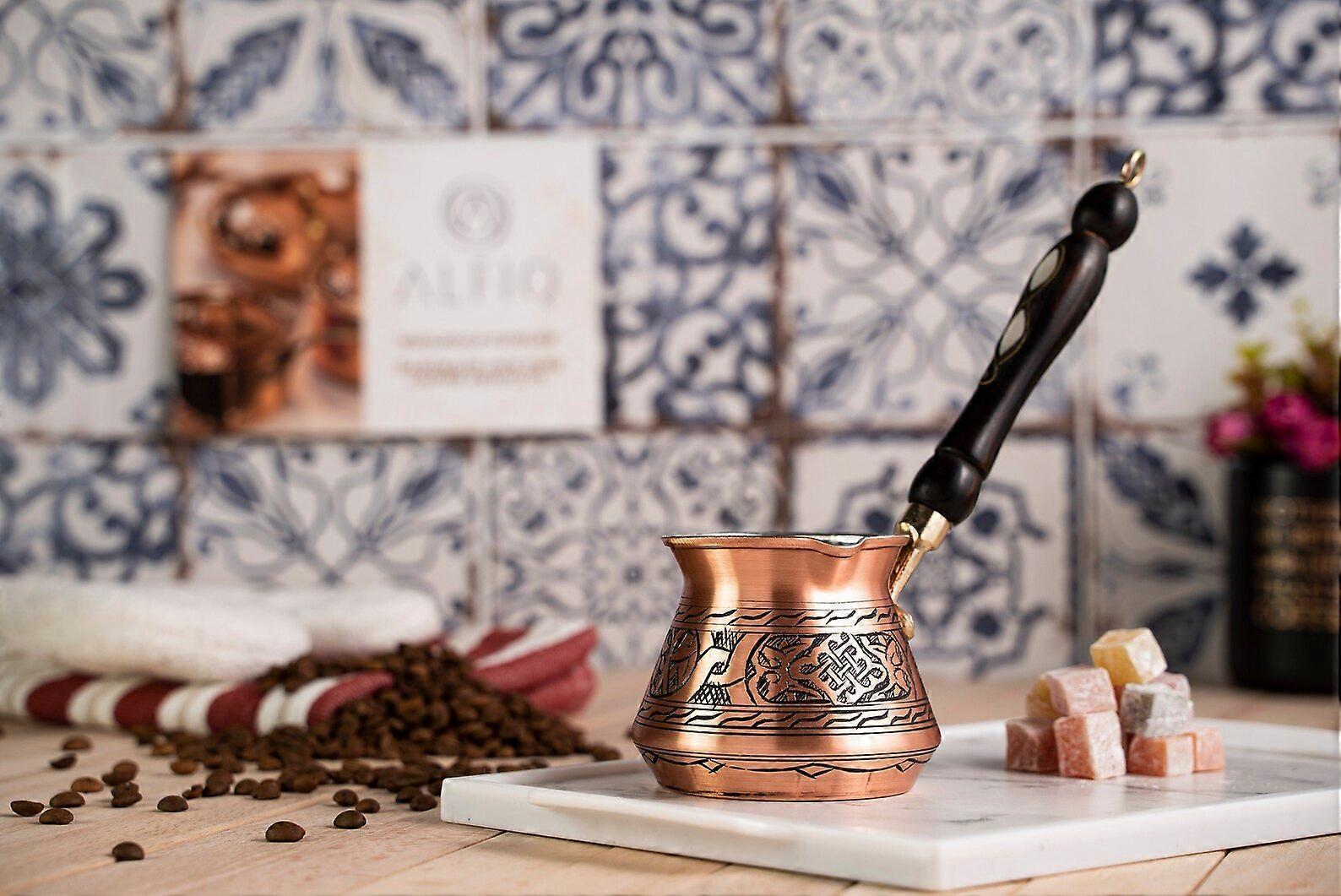 Dark Copper Wooden Handle Turkish Coffee Pot/ Handmade Non Stick Pot Milk Warmer / Original Vintage Coffee Manual Coffee Maker