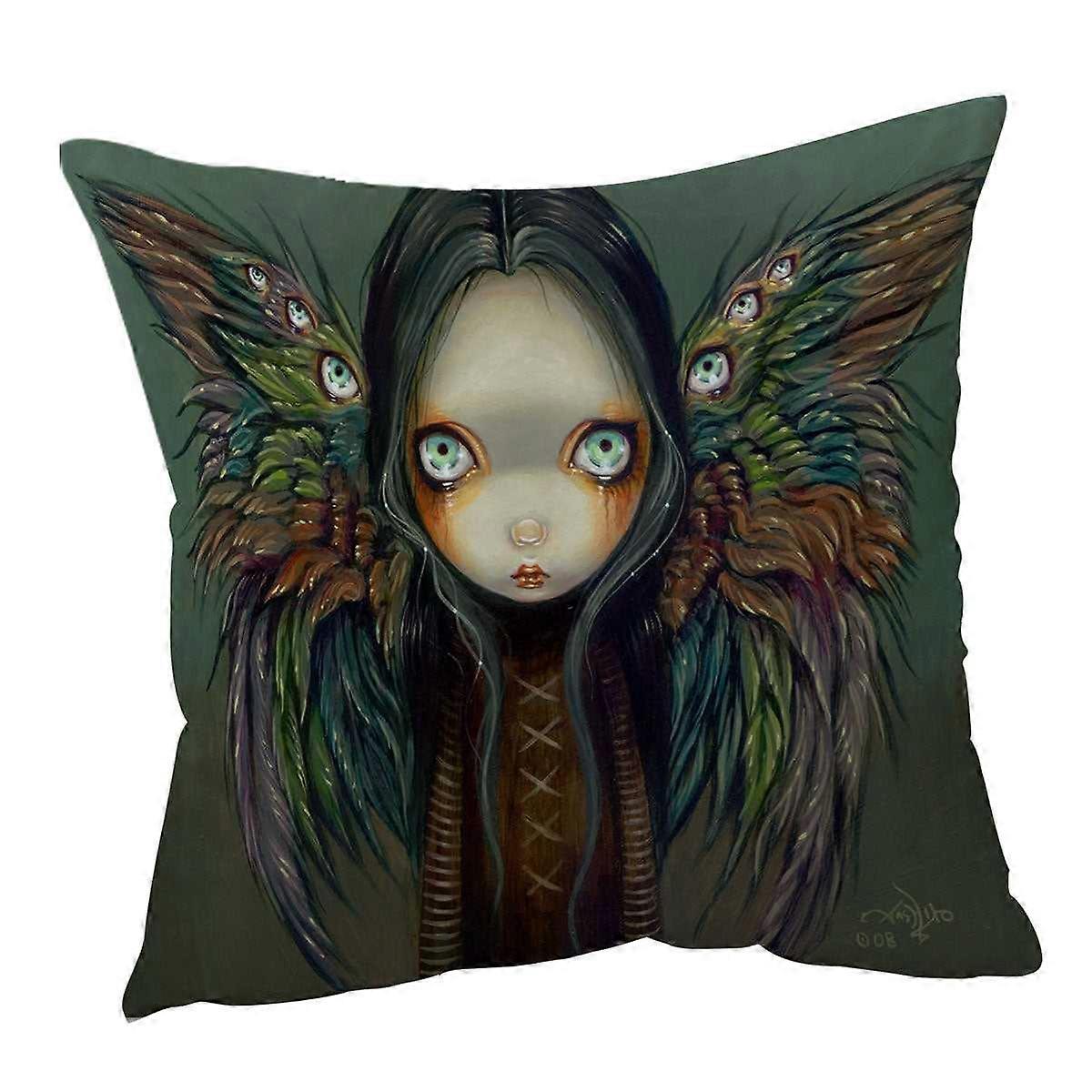 Dark Gothic Art the Winged Seer Creepy Winged Girl Cushion Cover