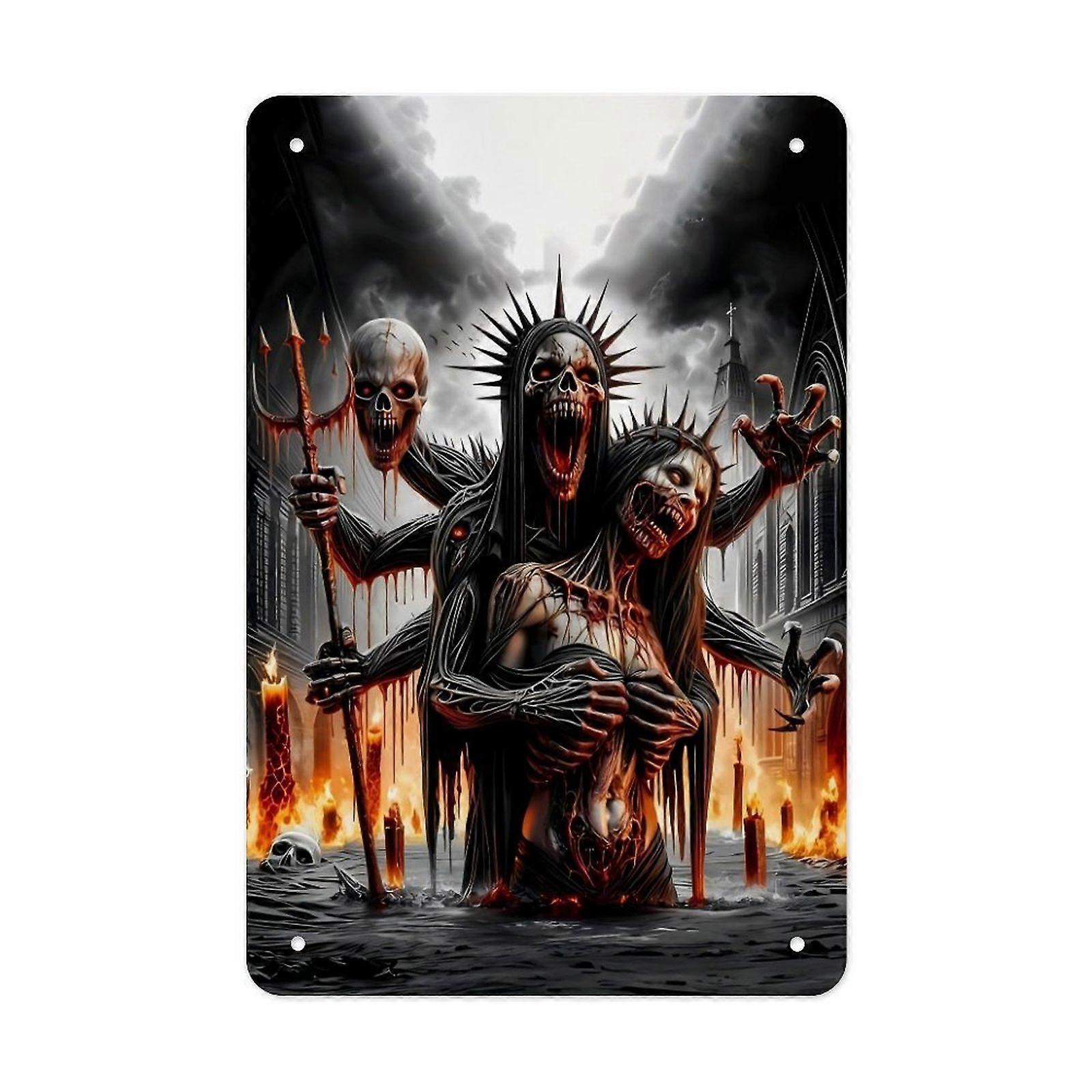 Dark Gothic Horror Metal Tin Sign – Fantasy Demon Art Wall Decor for Halloween, Man Cave, Bar