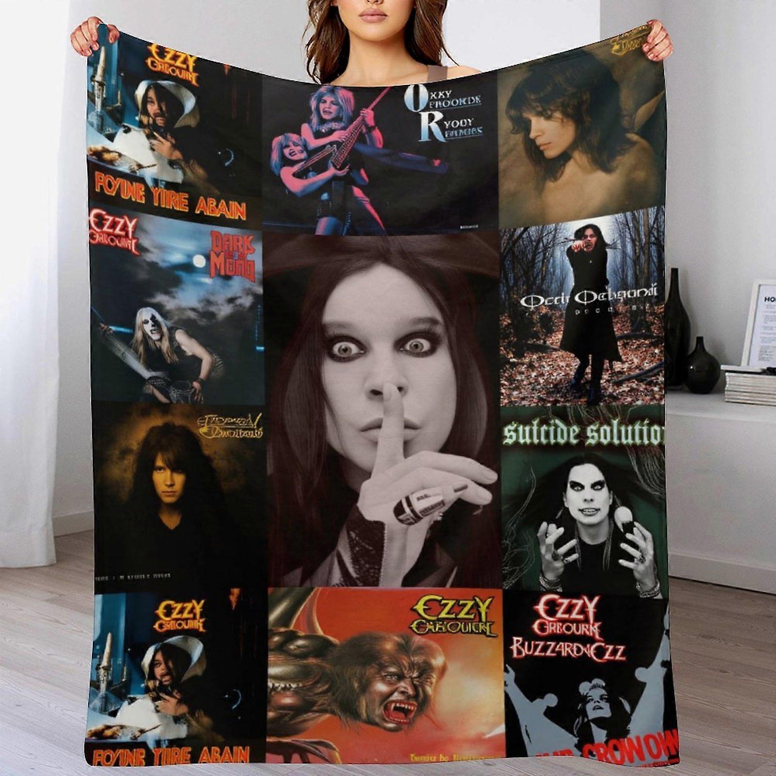 Dark Gothic Portrait Collage Printed Throw Blanket Vintage Rock Style Cozy Home Decor for Adults
