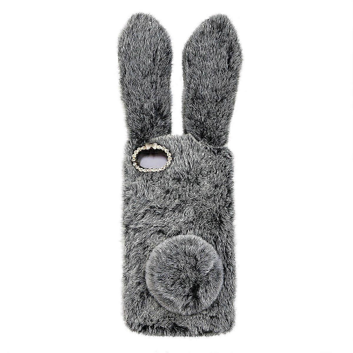 Dark Grey Adorable Plush Rabbit Design Phone Case Rhinestone Frame Phone Shell Fashion Shockproof Cover Compatible with Apple iPhone SE 2020