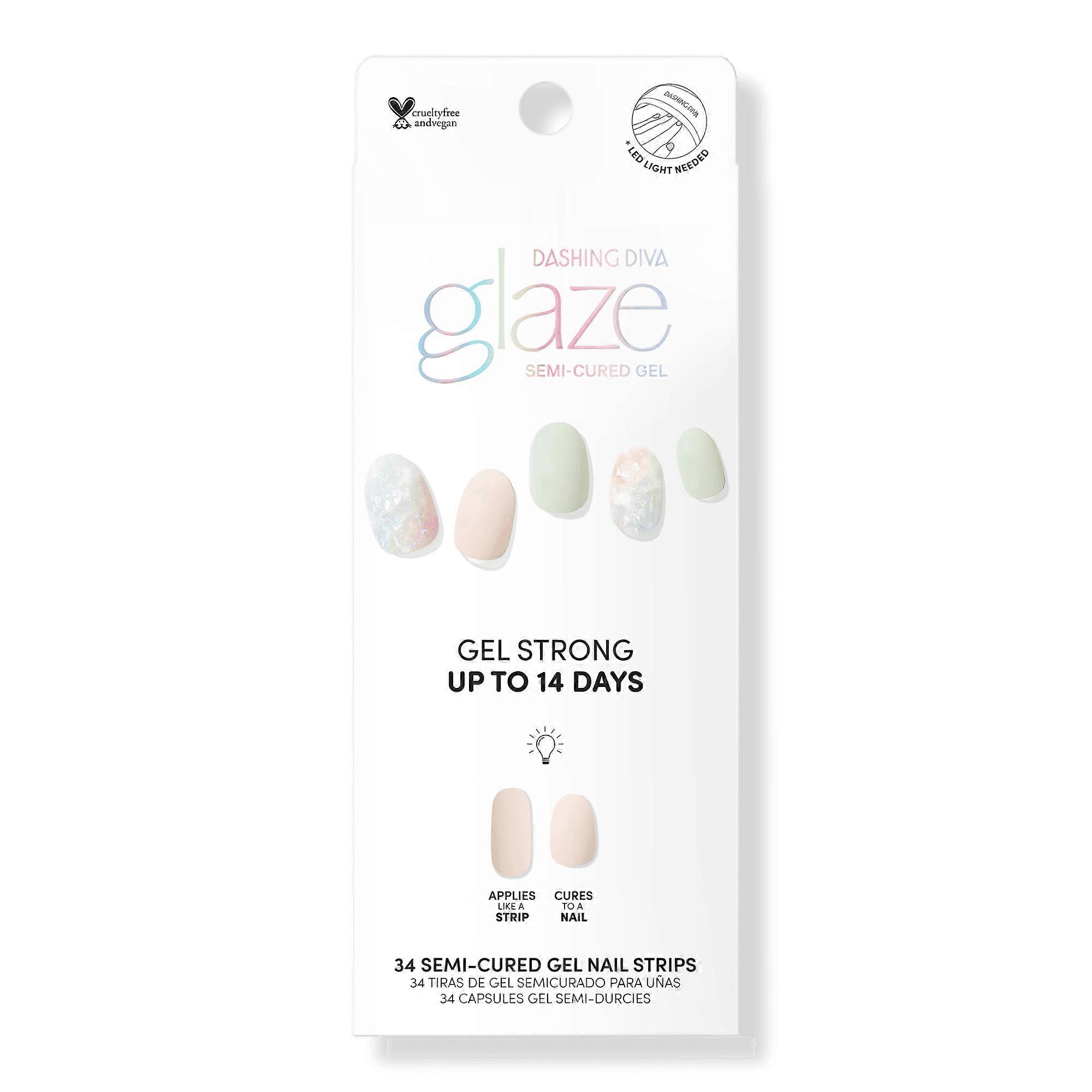 Get the pro-finish and sculpted effect of a salon gel manicure at home with ease with Dashing Diva's Emerald Marble GLAZE. GLAZE innovation is a semi-cured gel strip that cures under an LED lamp, giveing salon results: molded shape, mega volume, mirror shine that's gel strong for up to 14 days. Features A work of art manicure crafted like a stain glass window. Semi-cured light green & beige strips with a marble, glass-like effect and a glossy, high-shine finishMega volume: Mask imperfections for an even pro-finishMirror shine: Rich vibrant color with light reflecting particles gives brilliant shineGel strong up to 14 days: Lasting shine, durable wear that's chip-proof and scratch-proofEasy application: Fool-proof, fast curing formula Includes 34 semi-cured gel manicure strips in 12 sizes2 Prep Pads1 Nail File1 Wooden Manicure Stick Inactive Ingredients: Acrylates Copolymer, Polyurethane-11, Dipentaerythrityl Pentaacrylate, Acrylates Crosspolymer, Polyester-5, Chromium Oxide Green (CI 77288), Iron Oxides (CI 77499), Red 36 (CI 12085), Manganese Violet (CI 77742), Aluminum Hydroxide (CI 77002), Blue 1 Lake (CI 42090), Synthetic Fluorphlogopite, Titanium Dioxide (CI 77891), Polyethylene Terephthalate, Polyurethane-33, Aluminum Powder (CI 77000), Tin Oxide Suggested Use: Step 1: Prep - Wash hands with soap and water. Shape nails and push back cuticles. Use enclosed Prep Pad to ensure nails are clear from oils and residue. Make sure your nails are completely dry before application. Step 2: Select Size - Hold the sheet over nail to find your size. If you are in between sizes, always size down. Step 3: Apply - Gently lift strip from sheet starting from edge. Place strip over the center of your nail, starting at cuticle line and pressing outward. For optimal adhesion, the strip should be placed above the cuticle line avoiding skin or cuticles. Step 4: Remove Film - Remove the protective film. Step 5: Press - Press down firmly from center and side to side. Step 6: Trim - Trim strip flush to your nails using nail scissors or nail clippers. Step 7: Cure - Cure under LED light for 45 seconds. Step 8: File - Position the nail file horizontally along the contour of your nail. With one sweeping motion, file firmly across your free edge. Make sure GLAZE does not exceed beyond your nail length. Any overhang will cause chipping or cracking. Pro Tip: Using the wooden manicure stick gently press down on glaze strip thoroughly to seal all edges before curing. This will prevent hair and debris from catching onto the nail strip perimeter. How to Remove: Step 1: Remove - Apply cuticle oil on nail bed. Step 2: Lift - Use manicure stick to gently and slowly lift nail strip from corner of the cuticle area. Gradually push the strip off your nail. Caution: Do not peel off with force or in one quick motion. Caution: Keep out of reach of children Expiration Date: We have fresh stock each week with exceptional expiration dates prior to JANUARY 2024. Products will expire no later than six months to 1 year after receipt. Product Packaging: Please note that some manufacturer may often change their packaging. This product may arrive different from what is pictured. We will always ship the most up-to-date packaging to our customers. Please contact us if you have any questions about this product or would like to request an older version of this product.