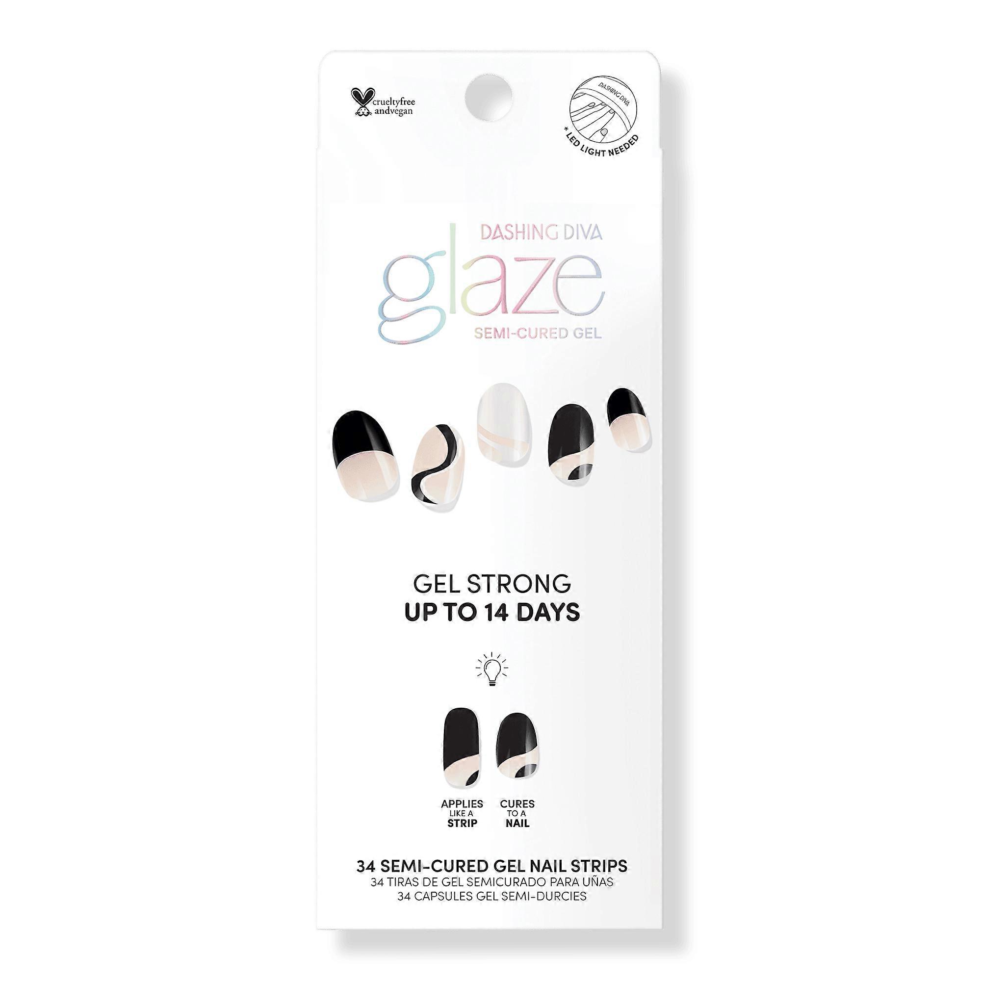 Get the pro-finish and sculpted effect of a salon gel manicure at home with ease with Dashing Diva's It Takes Two GLAZE. GLAZE innovation is a semi-cured gel strip that cures under an LED lamp, giveing salon results: molded shape, mega volume, mirror shine that's gel strong for up to 14 days.