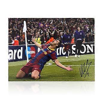 David Villa Signed Barcelona Football Photo: 2011 Final Goal