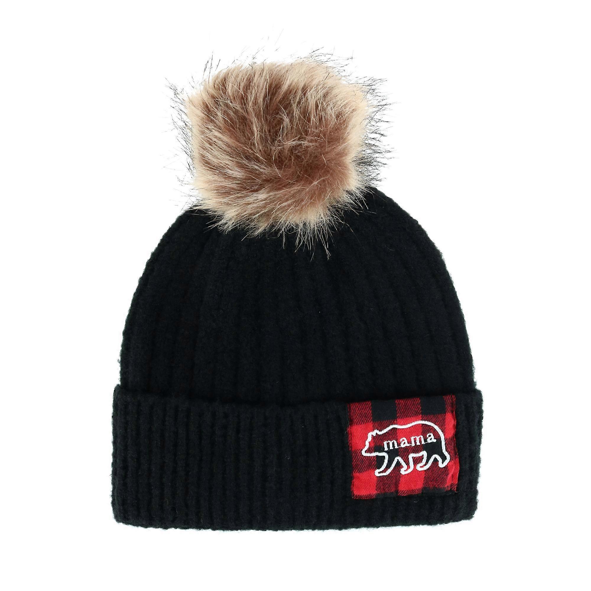 David & Young Mama Bear Beanie Hat with Plaid Patch and Pom (Women)