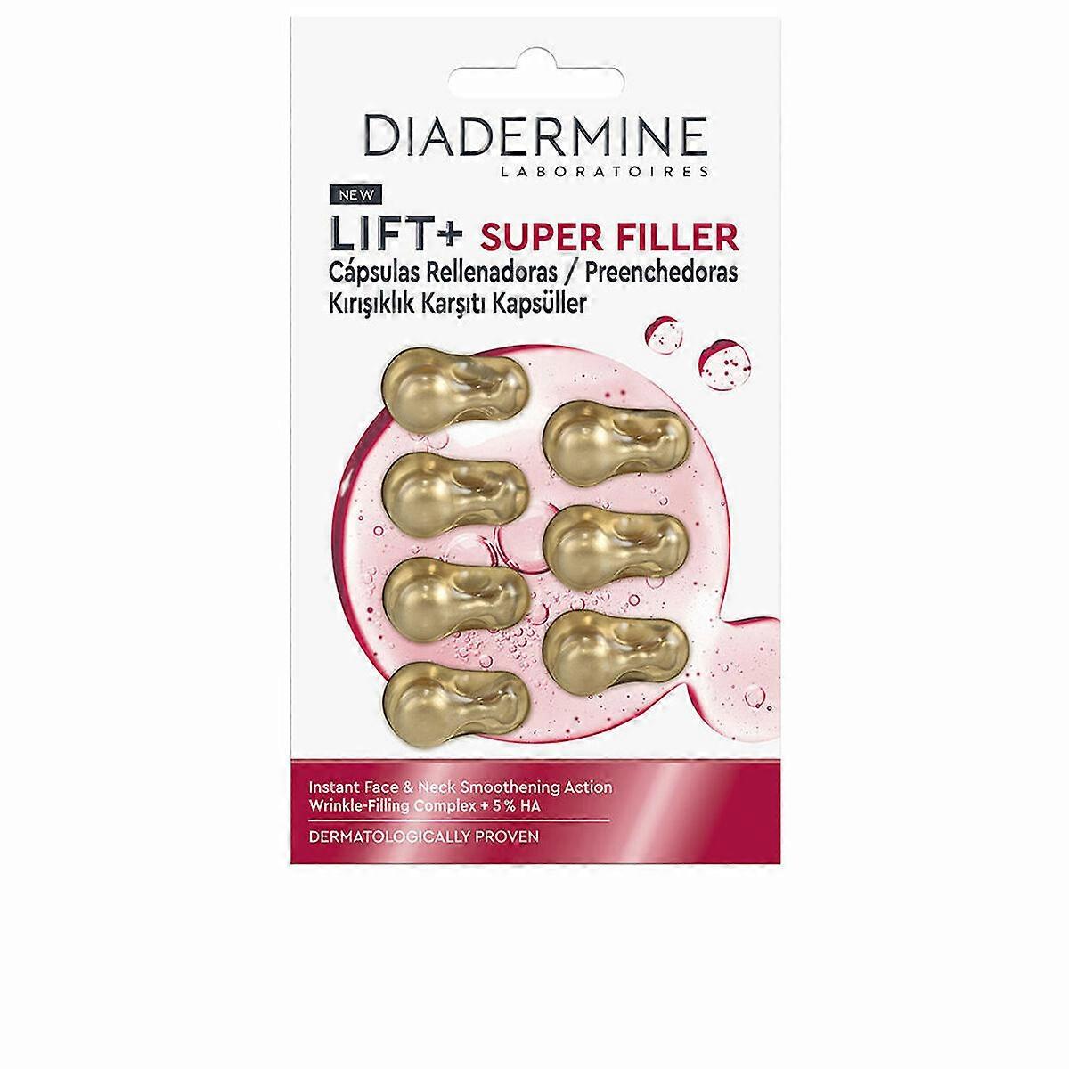 Die LIFT+ von Diadermine ist eine Tagcreme, die speziell für die Gesichtspflege und Behandlung des Halses entwickelt wurde und sich hauptsächlich an Frauen richtet, jedoch mit Eigenschaften, die eine unisex-Anwendung ermöglichen. Das Produkt wird in Einzelkapseln mit einer Inhalt von 7 Einheiten geliefert, die eine hygienische und dosierte Anwendung gewährleisten und so maximale Wirksamkeit bei jeder Nutzung sicherstellen. Hergestellt in Spanien, ist diese glättende und auffüllende Creme Teil der LIFT+ SUPER FILLER-Serie und enthält Schlüsselwirkstoffe wie Polysilicone-11, einen technologischen Inhaltsstoff, der zu einem samtig-weichen Hautfinish beiträgt, sowie Tocopheryl acetate und Ascorbinsäure, die für ihre antioxidativen und revitalisierenden Eigenschaften bekannt sind, die die Haut vor vorzeitiger Alterung schützen und die Zellregeneration fördern. Die fortschrittliche Formel ist darauf ausgelegt, die Hautelastizität zu verbessern und das Erscheinungsbild von Falten zu reduzieren, wobei sie besonders im Gesicht und am Hals wirkt, um einen sichtbaren straffenden und auffüllenden Effekt zu erzielen. Die leichte, schnell einziehende Textur macht die Creme für die tägliche Anwendung geeignet, sie lässt sich problemlos in die Gesichtspflege-Routine integrieren und hinterlässt ein angenehmes, weiches Hautgefühl. Obwohl kein Sonnenschutz enthalten ist, wird die Ergänzung mit einem UV-Schutz für eine umfassende Hautpflege empfohlen. Insgesamt ist die Diadermine LIFT+ Tagcreme ein praktisches und wirksames Anti-Aging-Produkt, das wissenschaftlich fundierte Inhaltsstoffe kombiniert, um eine gezielte Behandlung für Straffheit und Jugendlichkeit von Gesicht und Hals zu bieten.
