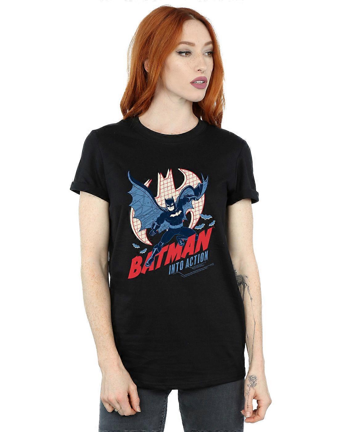 DC Comics Women's Batman Into Action Boyfriend Fit T-Shirt