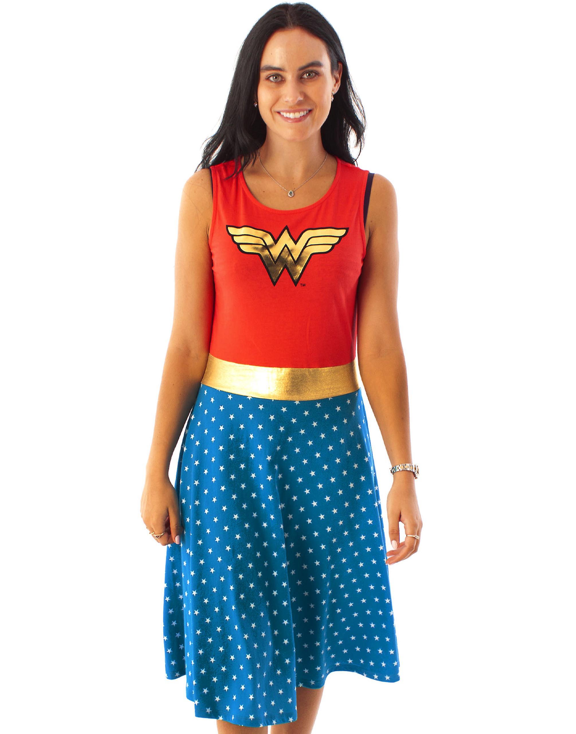 DC Comics Womens Sleeveless Skater Dress Red Logo