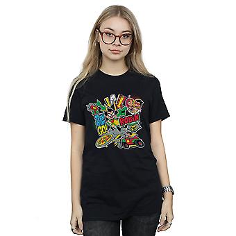 DC Comics Women's Teen Titans Go Robin Montage Boyfriend Fit T-Shirt