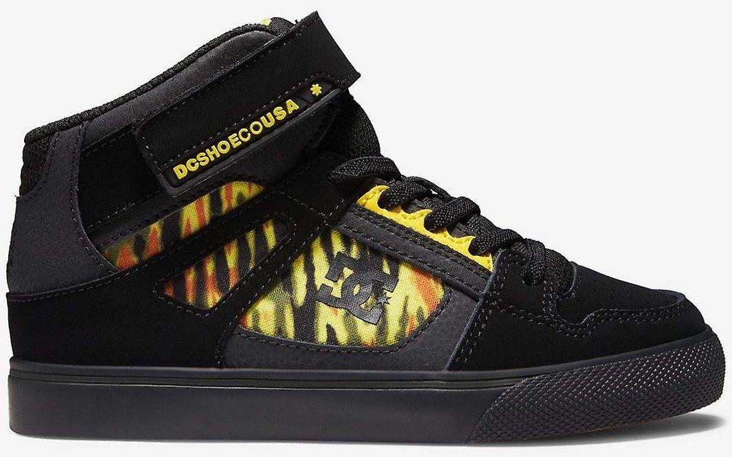 DC Pure High Top EV Black Yellow Red Kids Leather Skate Trainers