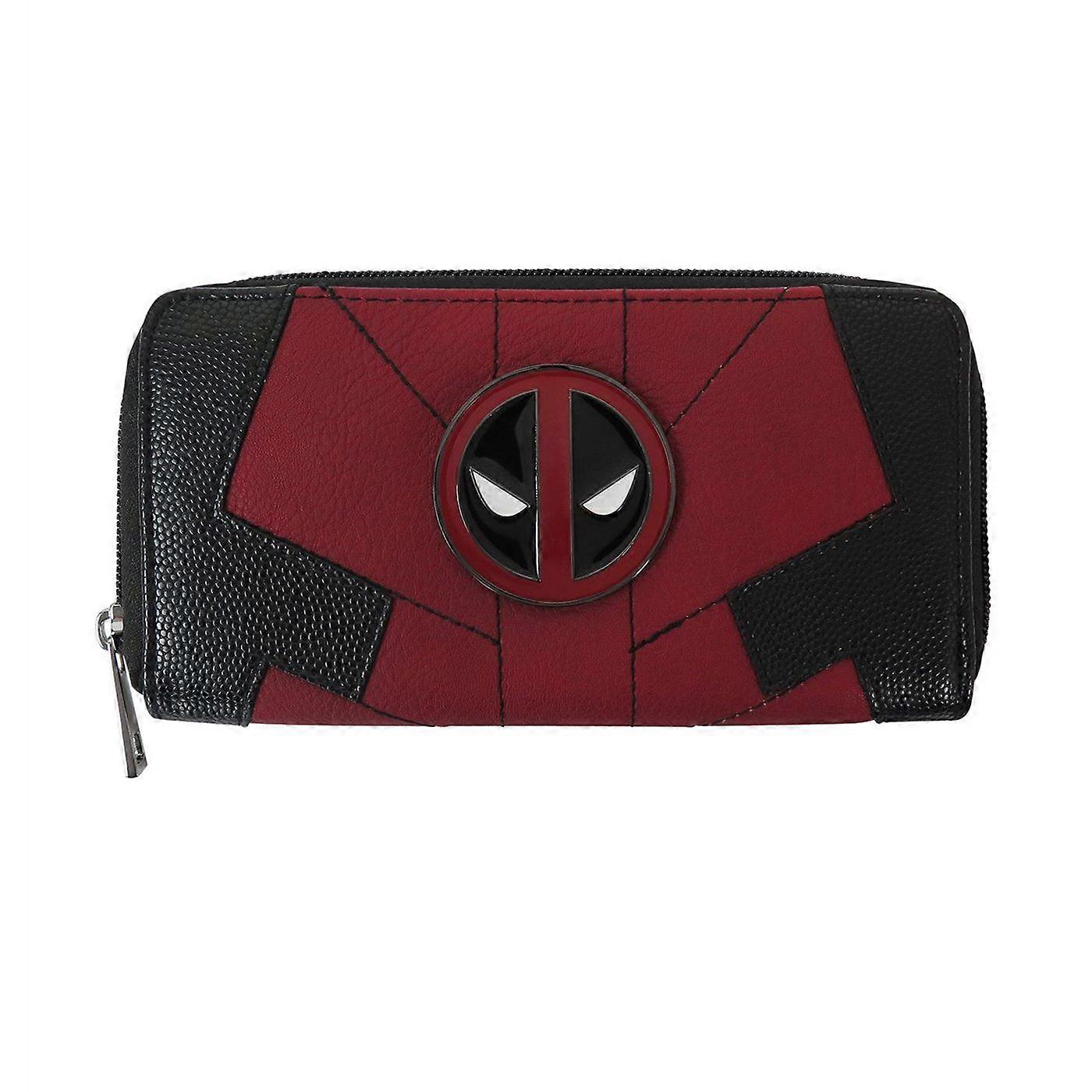 The Deadpool Suit Up Women's Zipper Wallet measures 7.5 inches across and 4 inches high. Beyond that, this great Deadpool wallet is made from polyester and polyurethane...which is really just a fancy way of saying 'faux-leather'. Can you see what it forms? It forms the look of the iconic costume from Marvel Comics This Deadpool wallet also comes with tons of places for money, cards, and whatever else it is one puts in a wallet. Maybe a free gift card for a stern or crisp handshake from Deadpool? I think that's good for that one cabbie All sizes are US sizes.