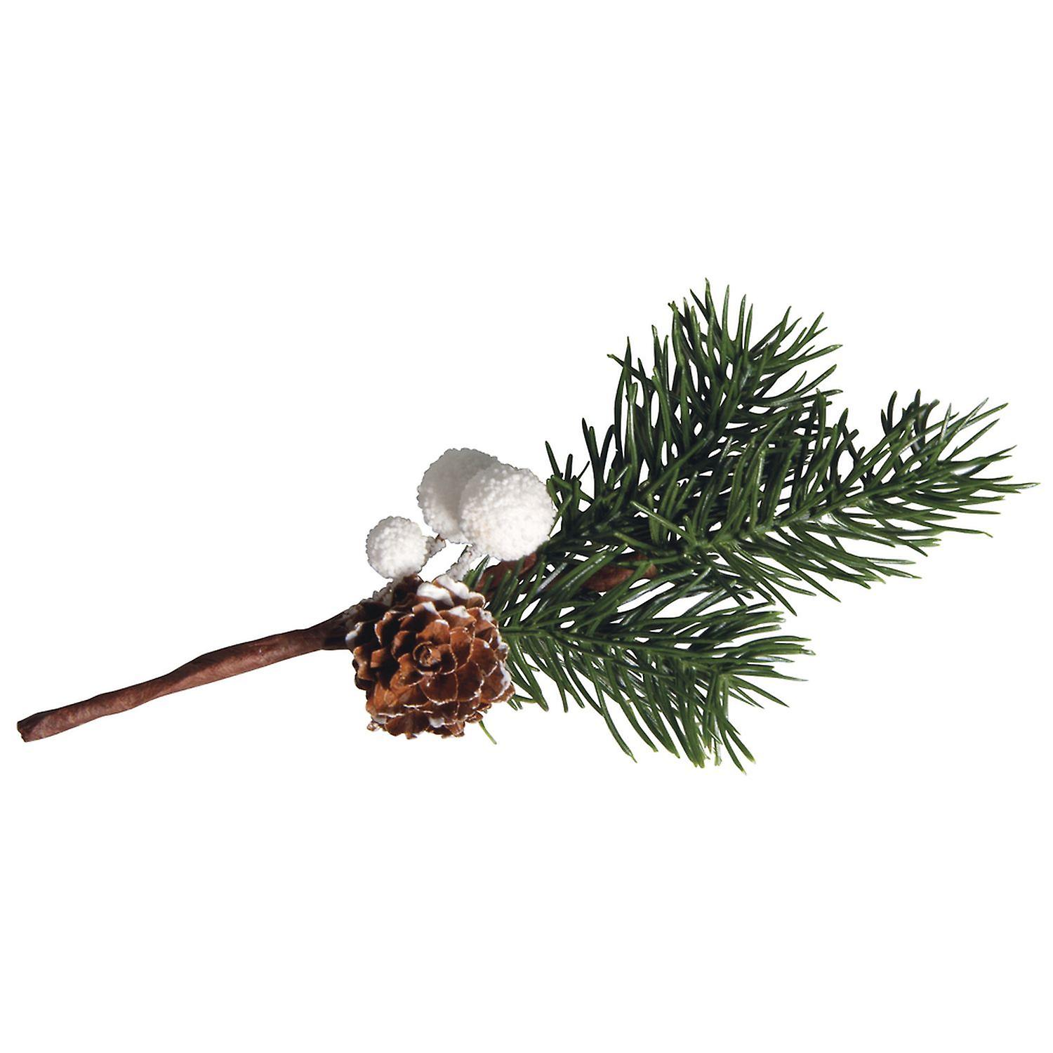 Decorative branch - Fir tree and white berries - Floral art - 18 cm