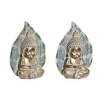 Decorative Figure DKD Home Decor 12,4 x 5,6 x 17,7 cm Blue Buddha Turquoise Oriental Stripped (2 Units)