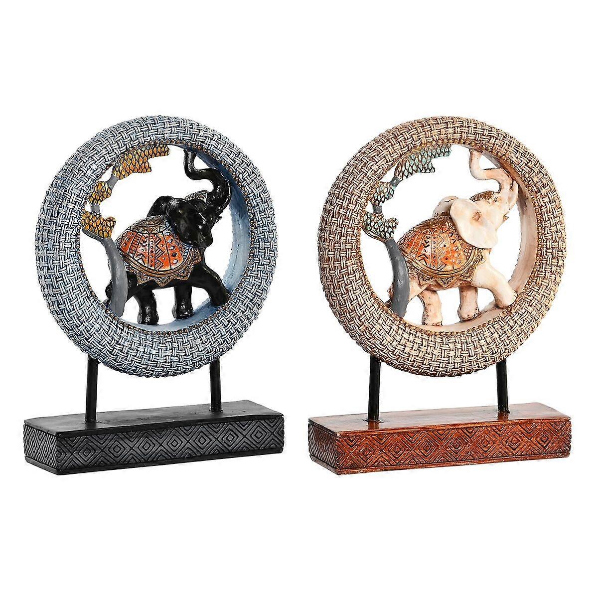 Decorative Figure DKD Home Decor 19,5 x 6,3 x 25,5 cm Elephant Beige Blue Colonial (2 Units)