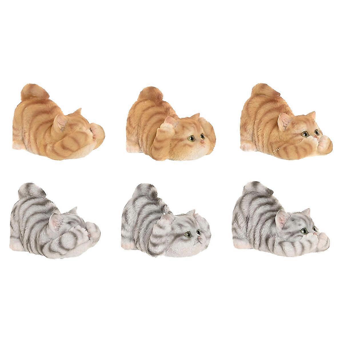 Decorative Figure Home ESPRIT Grey Orange Cats 5 x 9 x 6 cm (6 Units)
