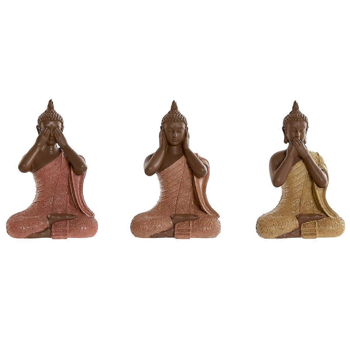 Decorative Figure Home ESPRIT Orange Coral Lime Resin Buddha Oriental 9 x 6 x 13 cm (3 Units)