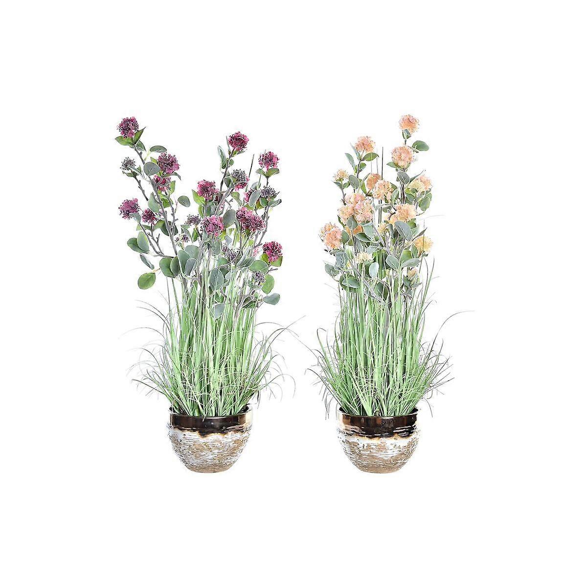 Decorative Plant DKD Home Decor Vase 20 x 20 x 78 cm Porcelain Pink PVC (2 Units)