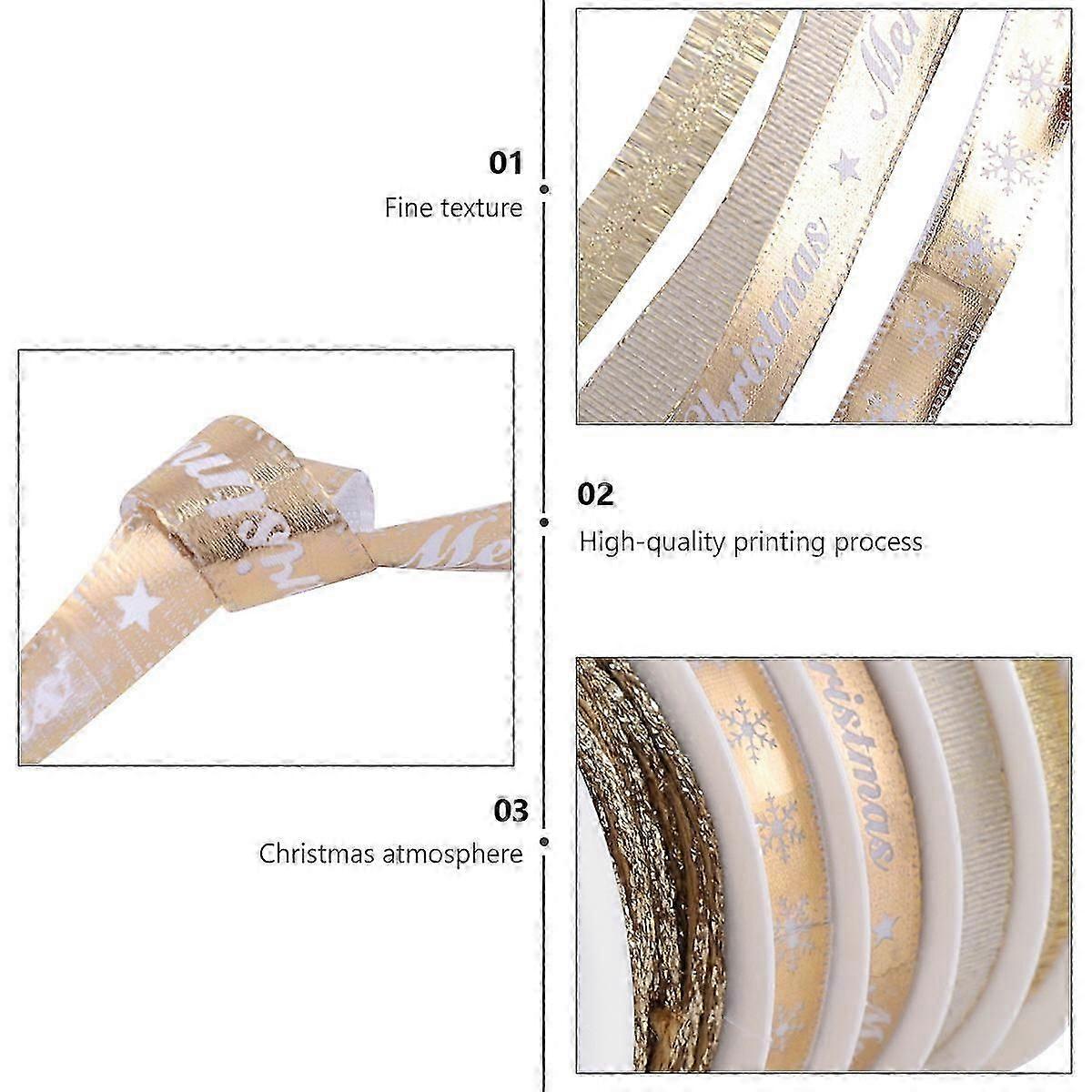 This product is a decorative ribbon, which is made from material. The Christmas style printed design makes this ribbon more chic and attractive. It is perfect for bows, curls, crafts, gift bag, boutique and floral projects. Applicable for your gift wrapping, scrapbooking, tree decorating and more! The bright color can make a good mood and atmosphere.Features - Color: Golden. - Material: Polyester. - Size: About 8X8X8cm/3.14x3.14x3.14inch. - Made of , durable and use. - Bright color adds fun and festive atmosphere for the party. - Great ribbons for wedding party, gifts, holiday packages or birthday presents. - It can not only be used to wrap the presents, but also can be great decoration for the party. - Christmas theme printed ribbons, for making banner, streamer, garland, for Christmas decoration.Package list: 5 x ribbon