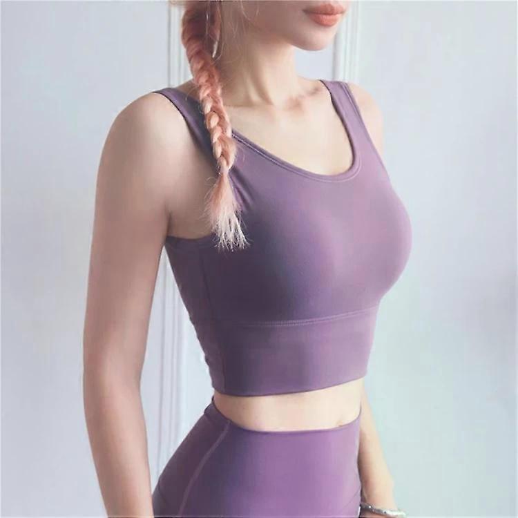 Deep U-Back Sports Bra-Shockproof,Gathered Design,Size L,Smoked Purple Smoked Purple,L