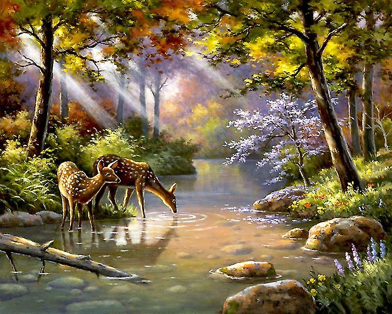 This Deer Forest Paint by Numbers Kit will give you a beautiful painting. This painting is approx 40x50cm (16"x20"), 50x65cm (20"x25.5") or 60x75cm (23.5"x29.5") and is available with a DIY frame, ready frame (40x50cm only) or without frame. Please note the DIY Frame requires installation. The kit without the frame includes: linen canvas, 3 brushes, 1 set acrylic paint, Instruction file, and reference sheet. The kit with the Frame includes: linen canvas ; 3 brushes, 1 set acrylic paint, Instruction file, reference sheet, frame, hanger and screws. Everything you need to get started right away is already included. Included is a high-quality linen canvas. Paint according to the pattern or be creative and give this masterpiece your personal touch