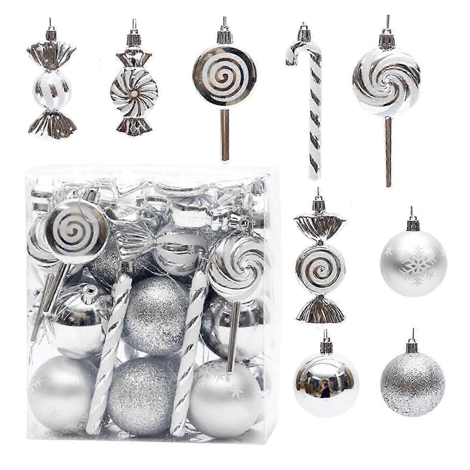 Delicate Colorful Christmas Baubles Plastic Christmas Decoration Set of 36 Tree Baubles Ornaments Unique Designs Silver
