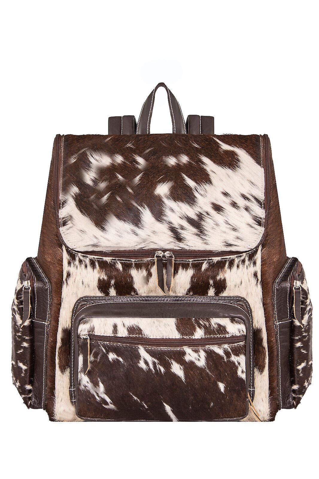 Deluxe Brown Leather Backpack Bag Genuine Cowhide & Cow Fur Travel Rucksack