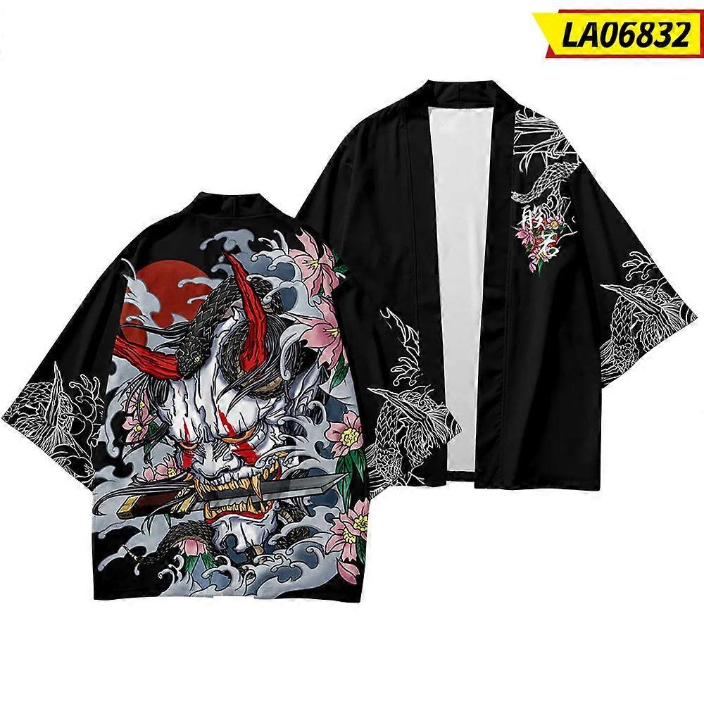 Demon Print Japanese Anime Kimono Haori - Striking Cosplay & Dress-up Asian
