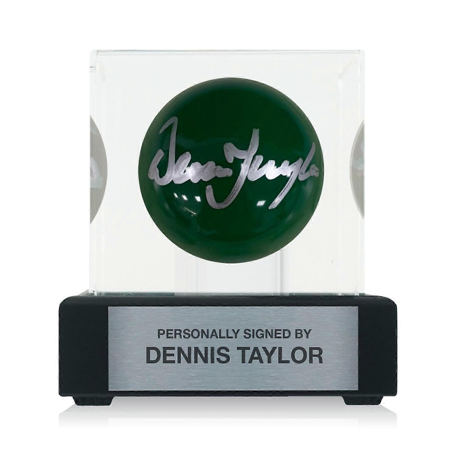 Dennis Taylor Signed Green Snooker Ball. In Display Case With Plaque