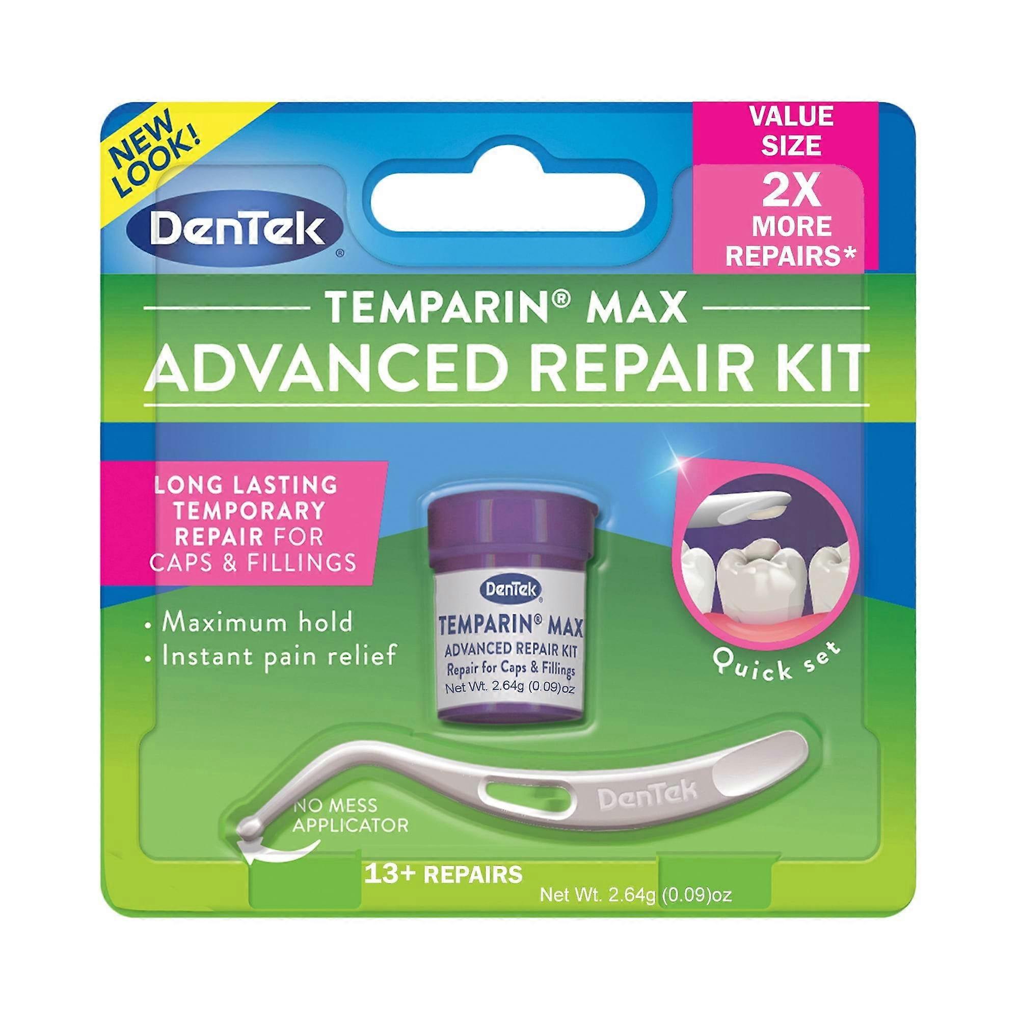 The DenTek Lost Filling Repair kit is a temporary dental remedy. It's meant to replace a lost filling or inlay until you have a chance to visit the dentist. This kit features a simple, one-step formula that fills in missing caps and more to protect and eliminate pain from nerve exposures. Once applied, this dentist-recommended formula dries fast to provide quick relief. This DenTek Temparin Max includes a duel-ended, no-mess applicator that allows for easy reach and control.