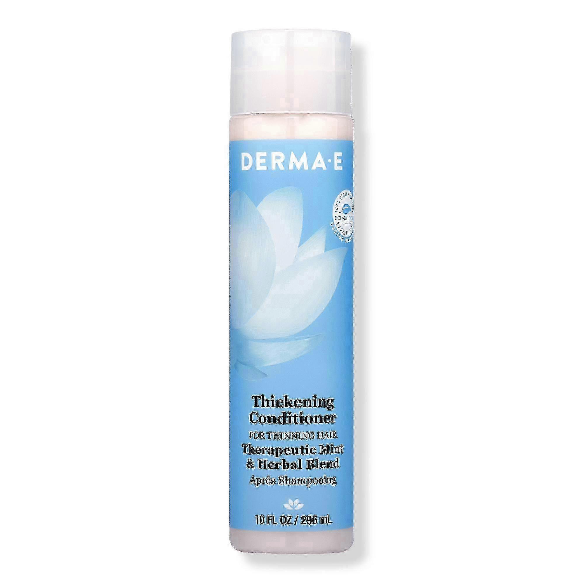 Derma E's Therapeutic Mint Thickening Conditioner is a sulfate-free, ultra-hydrating conditioner is infused with a nutrient-rich blend of naturally-derived proteins and essential oils to help nourish the scalp and hair from root to tip.BenefitsNourishes scalp, stimulates hair, reduces hair thinning and rejuvenates strandsSafe for color-treated hairFeatures100% Vegan and Cruelty-freeRecyclable & wind energy certifiedFormulated without GMOs, gluten, or soyKey IngredientsWillow Bark: Gently exfoliates, nourishes and soothes the scalpPeppermint Oil: Contains fatty acids and minerals that support healthy hair texture and thickness. This essential oil helps increase circulation, follicle depth and overall hair growthArgan Oil: Rich in nutrients and vitamins, Argan Oil improves scalp health and restores shine, strength, and softness to hair while taming frizzBiotin: Increases hair elasticity and strength allowing the hair to grow thicker and healthier as it revitalizes follicles and roots Suggested Use: After shampooing, apply conditioner from mid-length to the ends of hair. Leave on for 1-2 minutes and rinse well. Use regularly for best results. UPC: 000002560508 Weight: 1.13 lbs