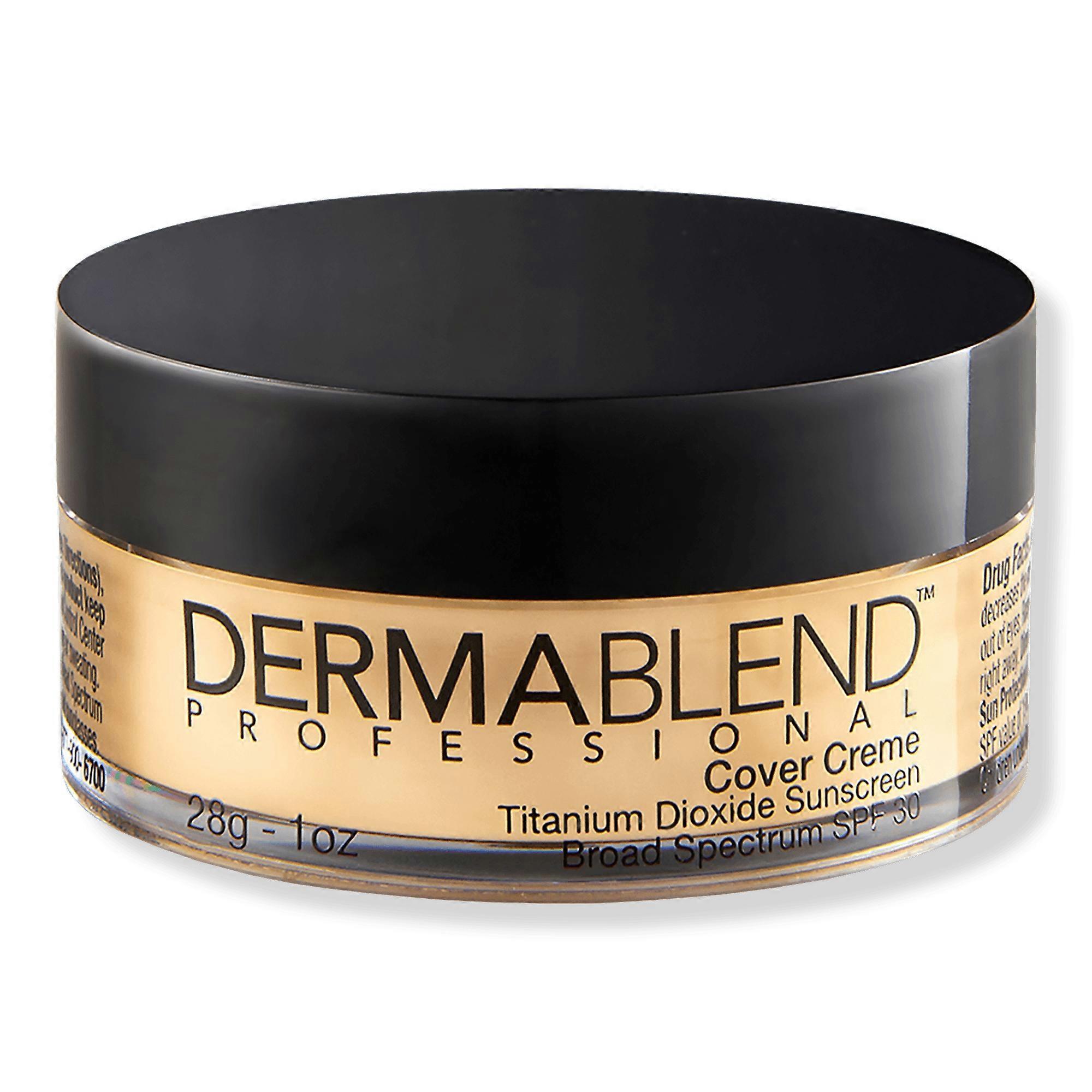 Dermablend Cover Creme Full Coverage Foundation is cream foundation designed to provide maximum coverage while protecting skin with broad spectrum SPF 30. Benefits Dermablend's highest coverage foundationFormulated with a high concentration of high-performance pigments to provide maximum coverage for skin concerns such as hyperpigmentation, scars, acne scars, birthmarks, vitiligo, and uneven skin toneProvides flawless coverage for up to 16 hours of consistent smudge and transfer-resistant wear when set with Dermablend Setting PowderProven to help strengthen and repair the skin surface barrierCreamy texture is never cakey or masky and provides a natural finishMulti-use foundation can be used as a cream concealer or cream contourSuitable for all skin types including sensitive skin 1 dermatologist recommended coverage brandSkin Security Standards: Dermatologist tested for safety, non-comedogenic, sensitive skin tested, allergy tested, and PETA certified cruelty-free Formulated Without FragranceTriclosanPhthalatesSodium lauryl sulfateAnimal derived ingredients Inactive Ingredients: Isododecane, Trimethylsiloxysilicate, Dimethicone, Cyclopentasiloxane, Cyclotetrasiloxane, Trihydroxystearin, Disteardimonium Hectorite, Propylene Carbonate, Tocopheryl Acetate, Phenoxyethanol, Ethylhexylglycerin, Calcium Sodium Borosilicate, Silica. May Contain: Mica (CI 77019), Tin Oxide (CI 77861), CI 77891 (Titanium Dioxide), CI 77491, CI 77499, CI 77492 (Iron Oxides), CI 15850 (Red 7 Lake), CI 73360 (Red 30 Lake), CI 42090 (Blue 1 Lake), CI 77400 (Pigment Metal 2). Suggested Use: Step 1 Apply: Warm cover creme with fingers by rubbing product in a circular motion, then apply over desired area. Step 2 Blend: Build coverage by tapping on additional product to achieve desired look. Step 3 Set: Apply setting powder and leave on for 2 minutes; buff off. UPC: 000002155630 Weight: 0.57 lbs