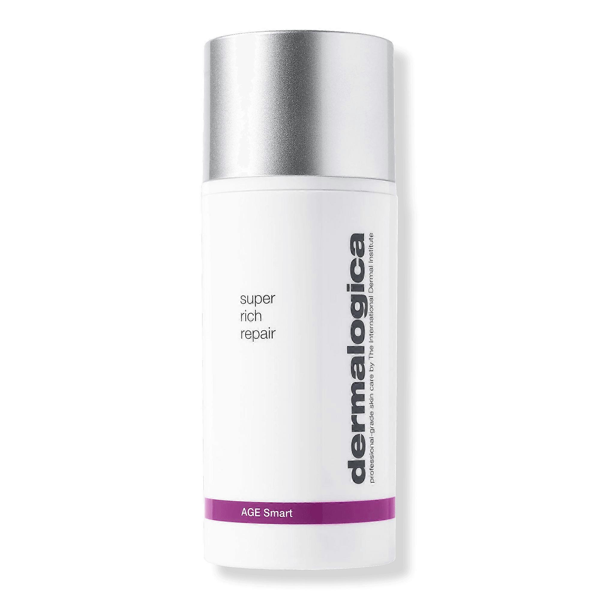 Dermalogica's Age Smart Super Rich Repair moisturizer is a deeply nourishing skin treatment that combats chronically dry, dehydrated skin. Benefits Deeply nourishing treatment that gives immediate benefits to chronically dry, dehydrated, and inflamed skinThis concentrated, ultra-thick cream, is formulated with vegan peptides that stimulate collagen production while an acid-free renewal complex smooths fine lines for dramatically improved elasticity and toneWhipped shea butter and oil of evening primrose replenish skin with maximum hydration, relieving dryness and reinforcing skin's natural defense barrier. Key Ingredients Allantoin: Provides anti-inflammatory and anti-aging benefitsShea Butter: Rich in Vitamins and fatty acids to hydrate and softenJojoba Oil: Moisturizes without clogging pores Formulated Without ParabensSulfatesPhthalatesSynthetic Fragrance Inactive Ingredients: Water (Aqua/Eau), Sodium Laureth Sulfate, Dimethiconol, Glycol Distearate, Cocamidopropyl Betaine, Fragrance (Parfum), Sodium Chloride, Glycerin, Sodium Benzoate, Selaginella Lepidophylla Extract, Carbomer, Gluconolactone, Cocamide MEA, TEA-Dodecylbenzenesulfonate, Guar Hydroxypropyltrimonium Chloride, Amodimethicone, Laureth-23, Citric Acid, PPG-9, Sodium Sulfate, Trehalose, Disodium EDTA, Phenoxyethanol, PEG-45M, Cetrimonium Chloride, Trideceth-12, Silica, Limonene, Linalool, Mica (CI 77019), Titanium Dioxide (CI 77891). Suggested Use: Apply to face and neck with light, upward strokes. Wait for cream to absorb before applying additional products. Use twice daily. Store at room temperature. UPC: 000002580597 Weight: 0.72 lbs