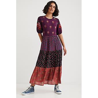 Desigual Dover Romantic Floral Purple Maxi Dress with Tiered Skirt Style 21WWVK36