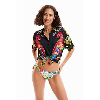 Desigual Dubai Tropical Black Loose Shirt with Multicolour Cats 24SWCW39