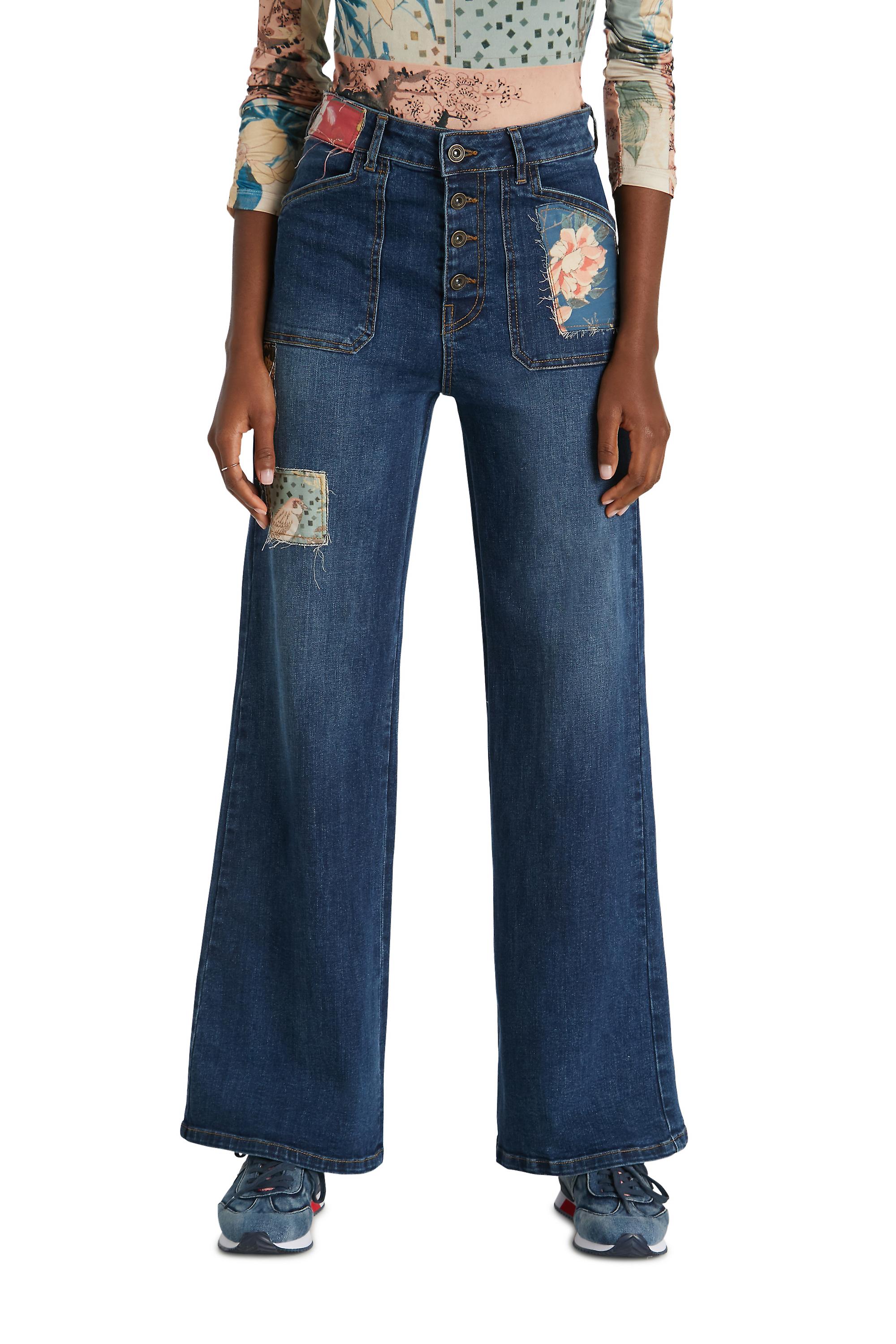 Desigual Floral Patch Jeans 1970s Wide Flared High Waist RRP£119 Style 21WWDD03