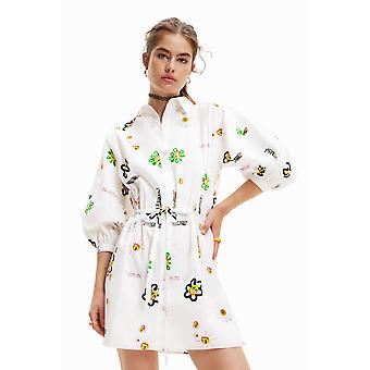 Desigual Inidan White 1990s Flower Sun Print Short Shirt Dress 23SWVW62