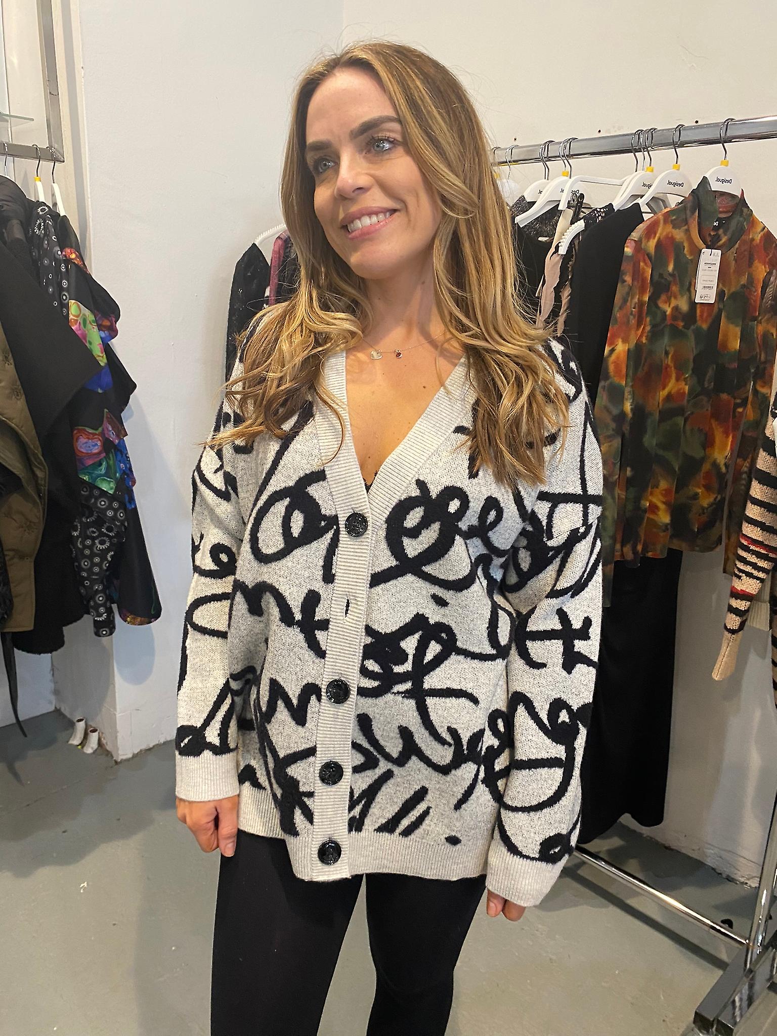 Desigual Lettering Oversized Monochrome Cosy Cardigan 23WWJF40