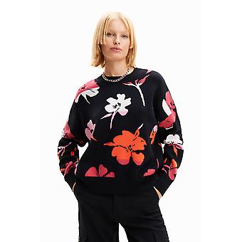 Desigual Luca Black Loose Sweater with Floral Design 24SWJF19