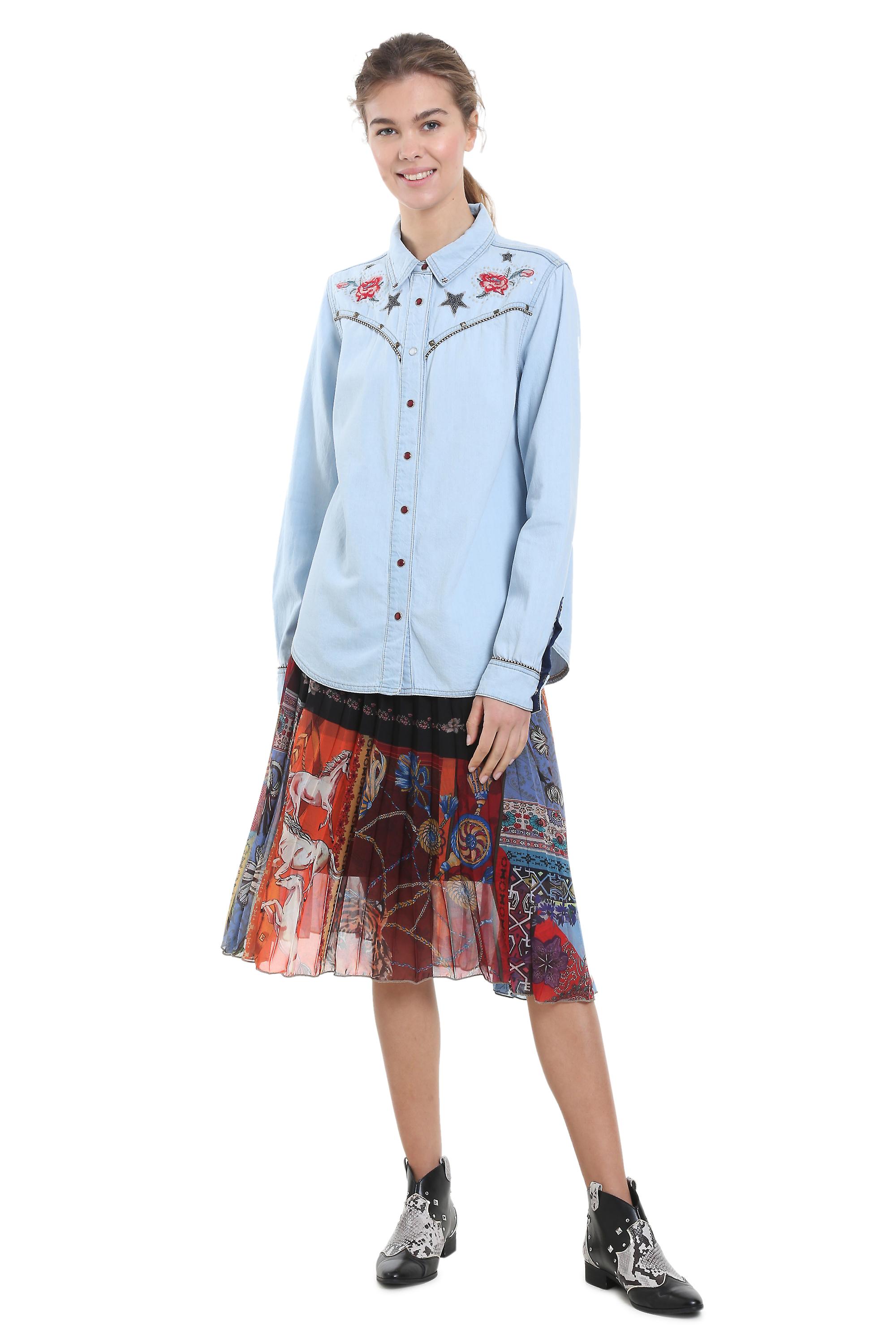 Desigual Women's Edna Floral Embroidered Cowboy Denim Shirt