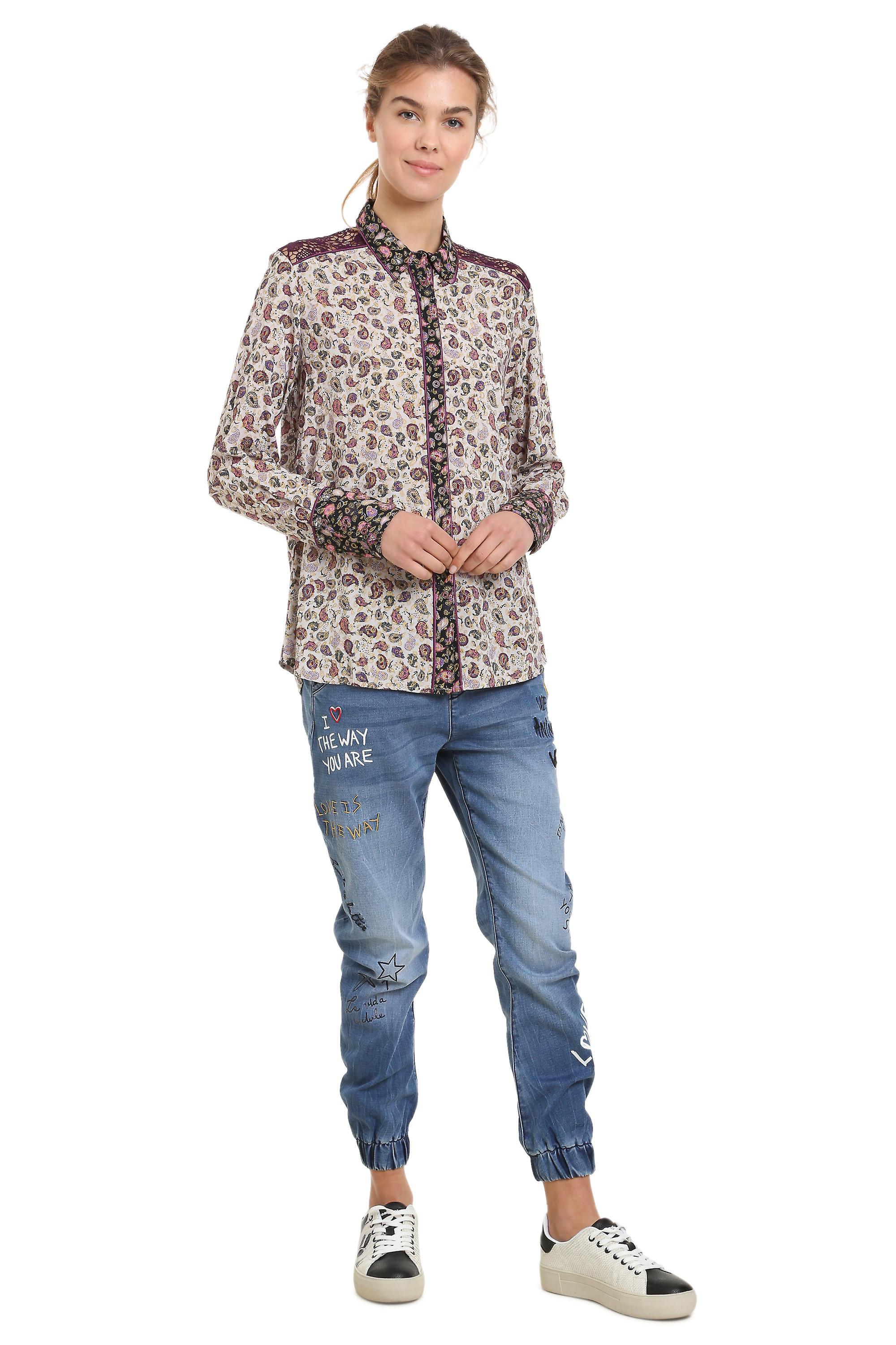 Desigual Women's Konya Paisley Print Lace Shoulder Shirt